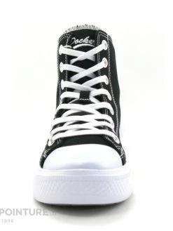 Pas de fermeture, la basket s’enfile et se retire en un clin d’oeil grâce à une bande élastique dissimulée en partie par les oeillets. Ce bandeau élastique est tout doux, en tissu éponge.