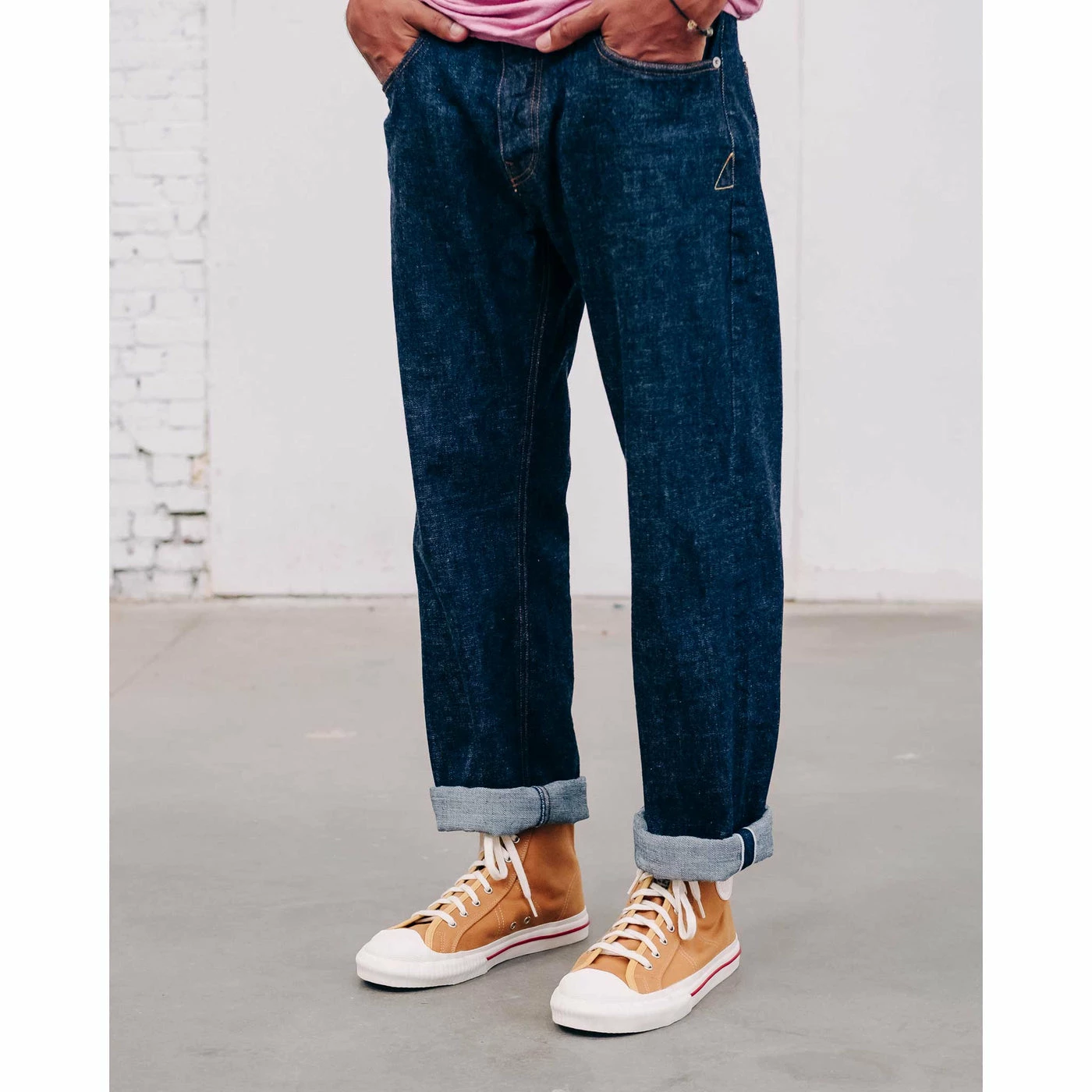 Say hi to JAY, Eat Dust’s first sneaker, designed in-house by our team. Inspired by vintage athletic running shoes from the 1950s, these high tops were made from premium Italian canvas and finished with a vulcanized sole and toe cap. Note the ankle patch with the classic Eat Dust “One For The Road” logo.