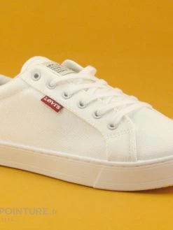 Vous fermerez vos tennis blanches Levi’s avec un lacet plat blanc traversant 6 oeillets.