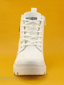 La semelle de marche des sneakers à plateforme Vans est blanche avec une ligne noire sur la tranche. Cette semelle mesure environ 2.5 cm d’épaisseur.